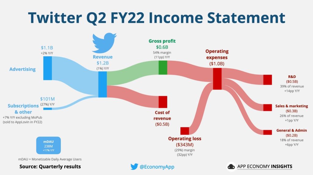 This, net negative profit of a digital product, is why Twitter starts to charge individuals and fire its employees.