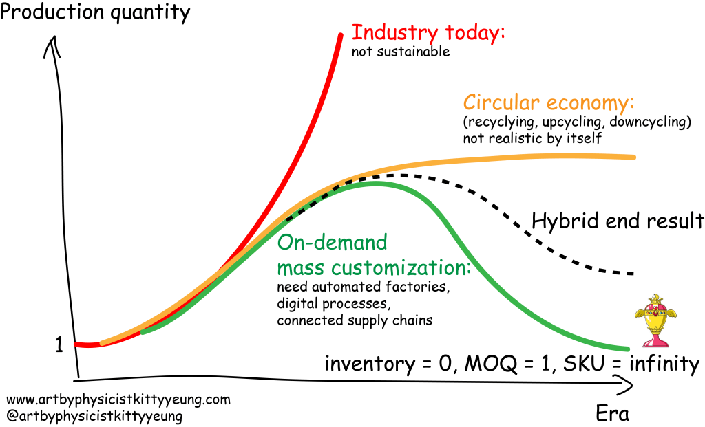 In summary, every step from design to manufacturing should have on-demand mass customization built in with ethical sourcing, upcycling and recycling.